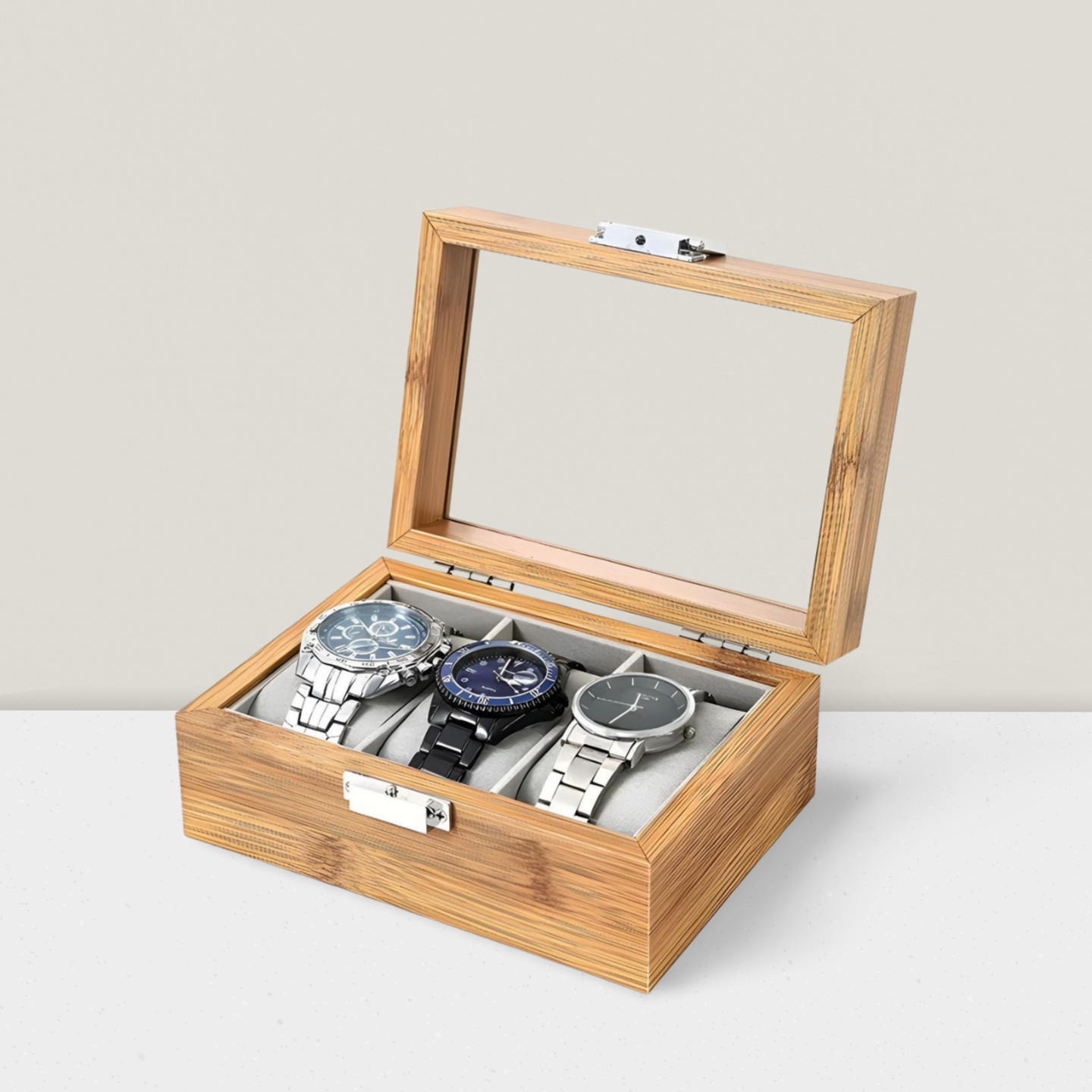 Conçue pour les amateurs d’horlogerie en quête d’un écrin à la fois naturel et raffiné, My Boite à Bijoux - Bratislava™ 3 associe l’élégance du bambou massif à un design épuré et intemporel. Avec sa capacité de 3 montres, son couvercle vitré et son intérieur en velours doux, elle est l’alliée parfaite pour organiser, protéger et exposer vos plus belles pièces.
