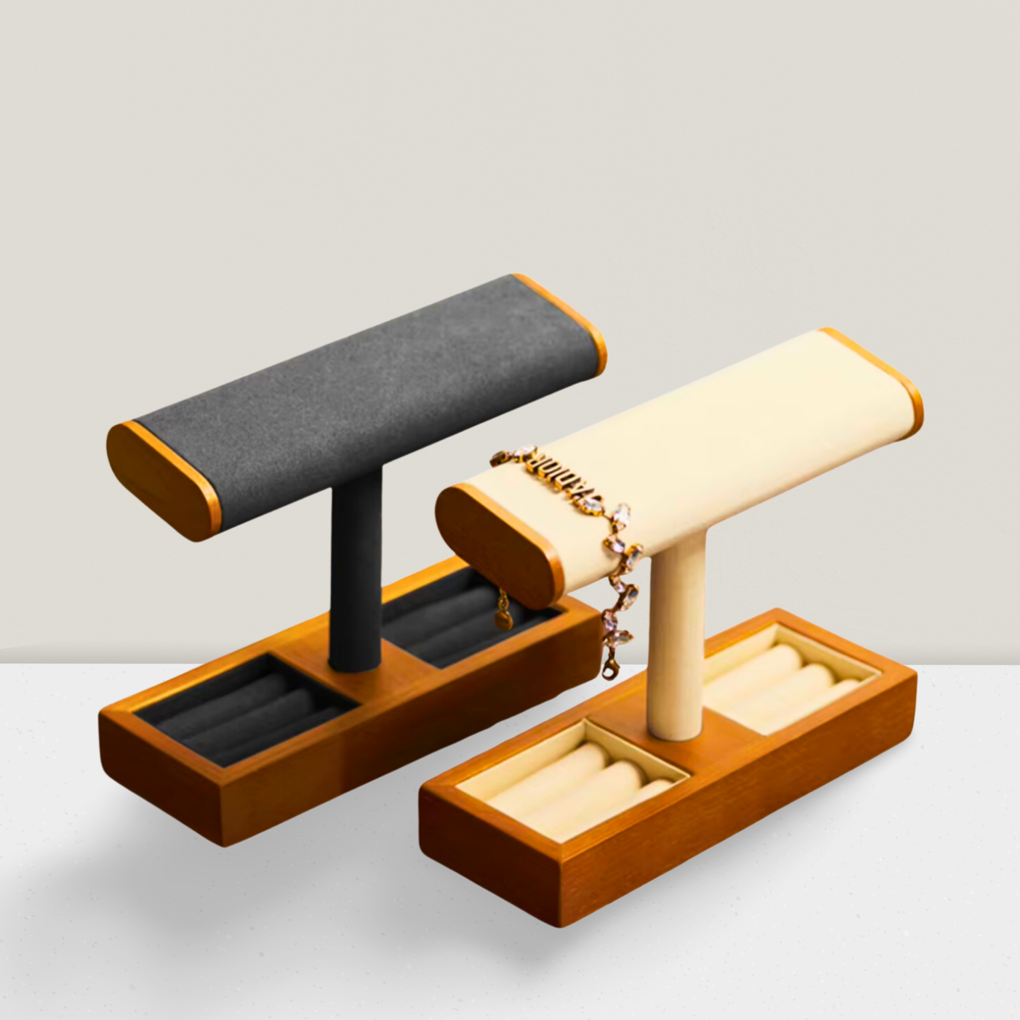 🔸 Matériaux premium – Bois naturel et velours doux pour une touche de luxe et de protection.